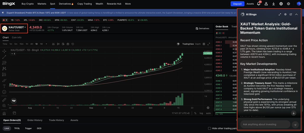 BingX AI integrated directly into the trading interface, you can access real-time insights, price analysis, and gold market forecasts to make more informed trading decisions.