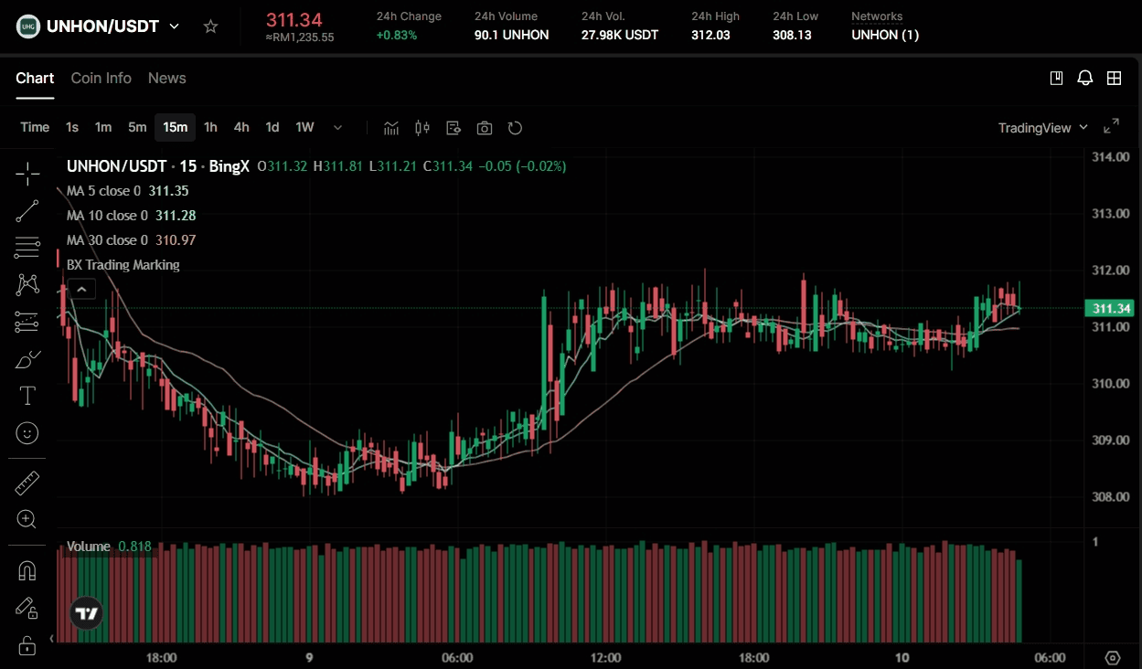 Paire de trading UNHON/USDT sur le marché spot BingX
