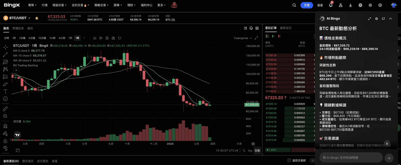 - BingX AIによる判断支援の利用: 注文前にBingX AIを通じて市場トレンド、価格レンジ、リアルタイム分析を確認し、注文参考として利用します。