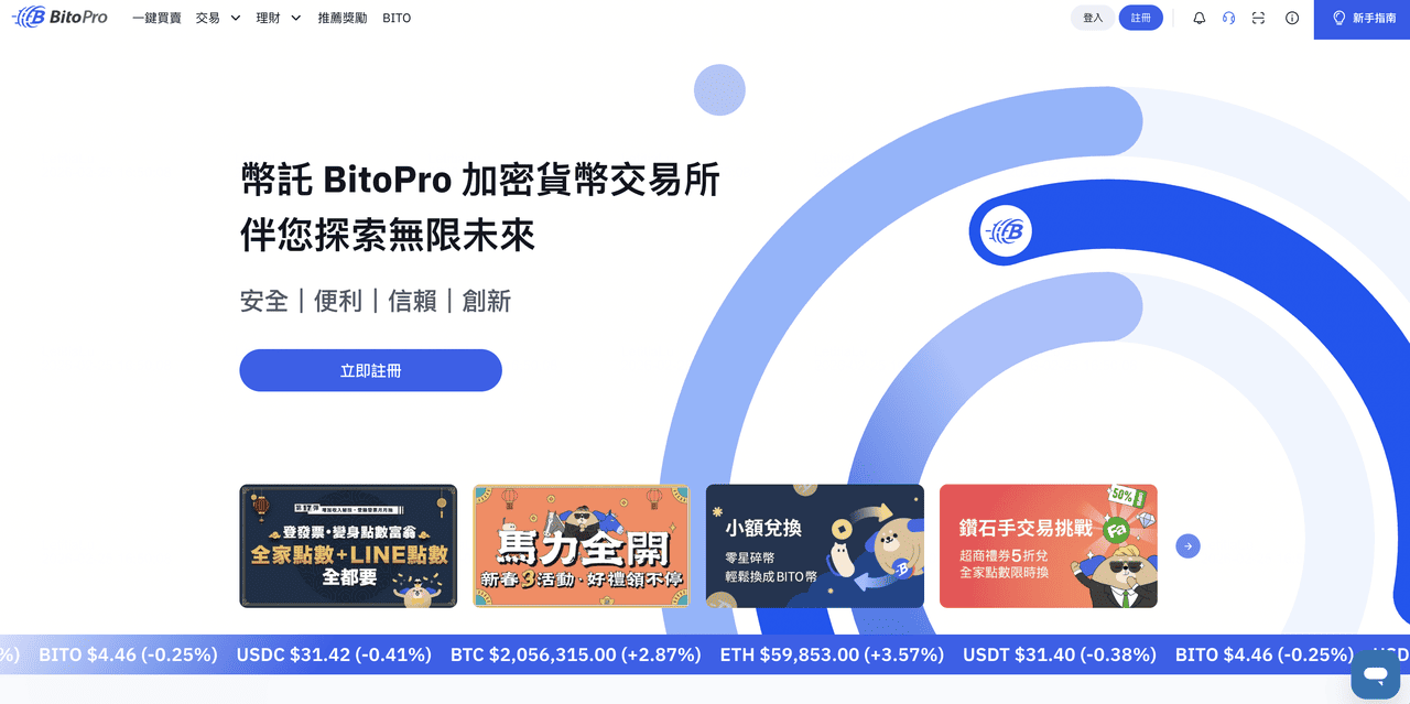 BitoProは台湾のBitoEXが運営し、同様に台湾ドルの入出金をサポートし、VASP コンプライアンス申請も完了している、台湾の監管環境下での合法的な取引所です。BitoProは現物取引と台湾ドル計価取引ペアを提供し、法定通貨入出金チャネルとして適しています。