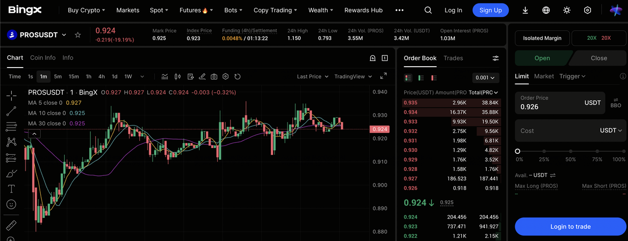 Как торговать Pharos (PROS) на BingX